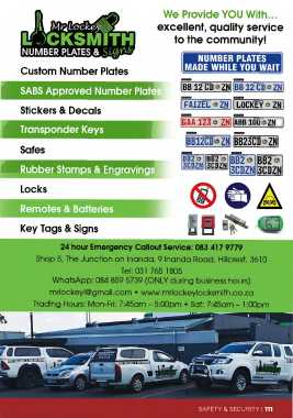 mrlockeyl@gmail.com • www.mrlockeylocksmith.co.za