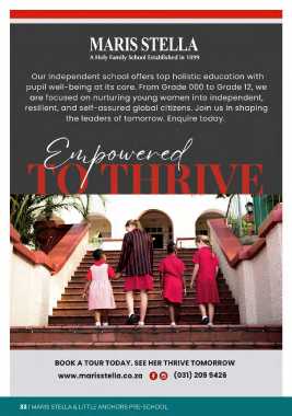 BOOK A TOUR TODAY. SEE HER THRIVE TOMORROW www.marisstella.co.za O G) (031) 209 9426 32 J MA RIS STELLA & LITILE ANCHO RS PRE-SCHOOL
