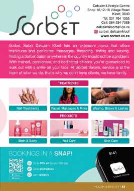 Sorbet Salon Delcairn Kloof has an extensive menu that offers