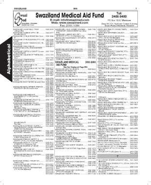SWAZILAND CONFERENCE OF......................... 2505 5253 AID FUND SWAZILAND SUPPLY CENTRE Mbabane ... 2404 2951