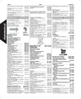 UMBANGO INVESTMENTS Jenden Bldg...... 2404 8048 2517 0500 VALUE AUTO PARTS 2505 7945