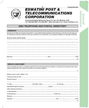 Eswatini Post & Telecommunications Corporation is issuing 2024 Telephone Directory free to all valued customers. On this page you