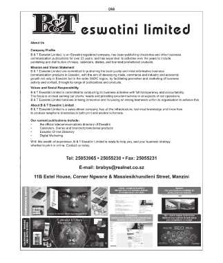 B & T Eswatini Limited, is an Eswatini registered company, has been publishing directories and other business