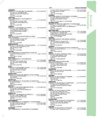 75 Kenneth Kaunda Avenue……………………….... + 258 21 492 676 EMBASSY OF THE SULTANATE OF OMAN.…............ + 27 12 362 8301