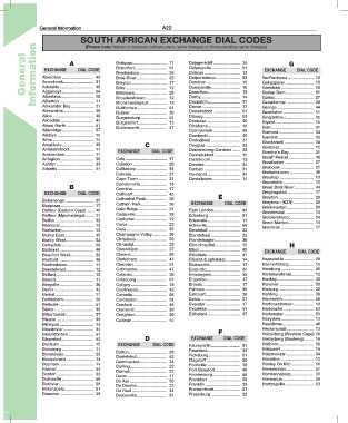 General SOUTH AFRICAN EXCHANGE DIAL CODES