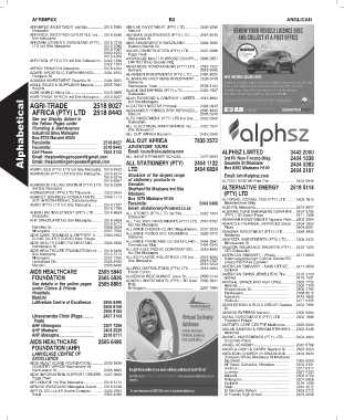 AGRIVET BUSINESS CONSULTANTS........... 2404 1111 2404 5408 ALTERSOL CONSULTING (PTY) LTD ............ 2505 7615