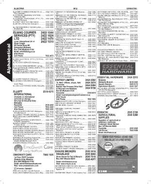 ELEKTRO LTD Ind Site Sidwashini.................... 2422 0305 EMBASSY OF UNITED STATES OF ................ 2417 9000 ENYAKATFO INVESTMENTS (PTY) LTD ..... 2404 9045
