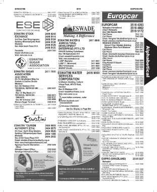 ESWATINI SOS Ext 3.................................................. 2404 8337 ESWATINI WATER & AGRICULTURAL.......... 2404 7950 Europcar