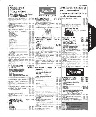 PHILANI CLINIC 2505 7108 Mbabane .................................................................... 2404 5481 PLUMB-BUILD INVESTMENTS Simunye....... 2383 8178