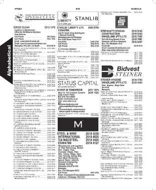 ST MARY'S CLINIC Lobamba................................ 2416 1438 T/A MACSTEEL 2518 5420 Matsapha