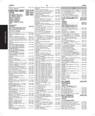 Web: www.forestersarms.co.za FRIEDMAN FANNY Dr Malkerns ......................... 2528 3365 G H B INVESTMENTS Manzini............................. 2505 5454