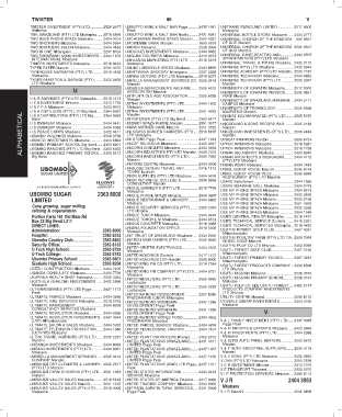 TWISTER INVESTMENT (PTY) LTD................. 2528 2017 UMBUTFO WINE & MALT BAR Piggs ............. 2435 1081 UNITRANS SWAZILAND LIMITED ..................... 2517 4000