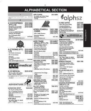 A S D MEDICAL 2518 4742 2505 9106 ATLAS MOTORS (PTY) 2442 4322
