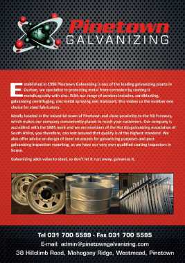 Established in 1996 Pinetown Galvanizing is one of the leading galvanizing plants in