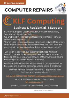 BBCUUATSSEIINNGEEOSSRSSYSSHEERREVRVIEICCEESS CCOOMMPPUUTTEERR RREEPPAAIIRRSS EEddiittoorriiaall ssuupppplliieedd bbyy KKLLFF CCoommppuuttiinngg 1144 || KKLLFF CCOOMMPPUUTTIINNGG