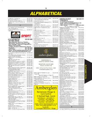 A & S JUMPING CASTLE AND MARQUEE ........ 076 195 0074 ALASTAIR BULL 4 Whitehouse 48 Main Rd..... 033 330 5551 AMBERGLEN RETIREMENT VILLAGE & CARE .. 033 239 4111