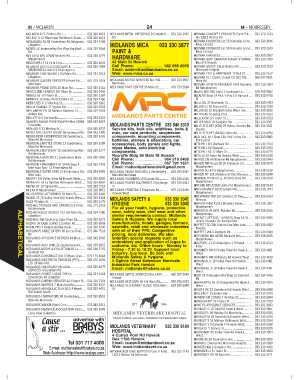 MELLAMPHY ED 24 Midmar Gardens 12 ......... 033 239 1824 Email: midlandpartscentre@gmail.com MILEI ME 22 Buchanan St ................................ 033 330 6403