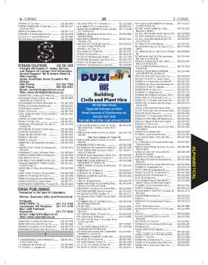 SWAN PUBLISHING THE BED KING.................................................... 033 342 3045 TIMBER 24 FORESTRY SOLUTIONS 81 ............ 033 330 6469