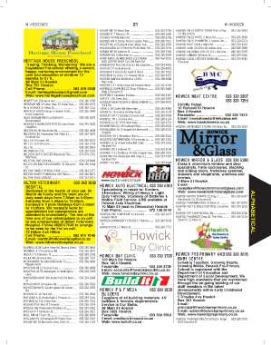 Registered Pre-school offering a secure, HOMANN MJ 3 Moorhen Ln.............................. 033 239 5009 HOWICK INFORMATION OFFICE Falls Dve..... 082 932 7549