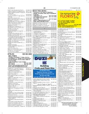 TEAM DUZI BUILDING & CIVILS CC 46 Old.... 082 784 3736 THERON J & ASSOCIATES INC 1 White .......... 033 330 2922