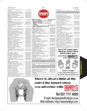 WILLIS JCD Bag Balgowan............................... 033 234 4410 WORTMANN E 69 Ridge Rd............................... 033 330 2356