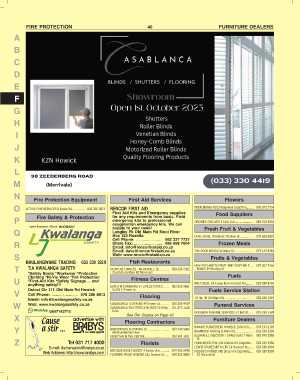 BRENTWOOD FLOORING 18............................. 033 330 5066 BIZAKAHLE DISCOUNT FURNISHERS 7 Main. 082 976 2088