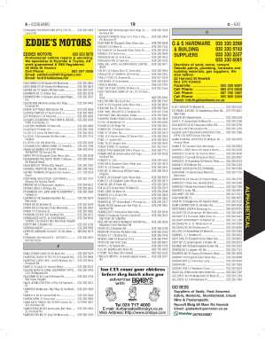 EDDIES MOTORS 033 330 5670 FEAR PMO 50 Elizabeth Gdns Wear Ave 033 330 6258 SUPPLIERS 033 330 2557