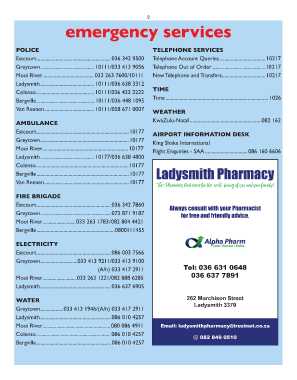Estcourt 10111/033 413 9056 Telephone Account Queries 10217