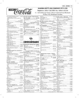 COSTA NN ............................................................. 30 1240 CROWN DISTRIBUTORS CC .......... 21 2092 Fax ........................................................................ 23 6614 DANSTE INDUSTRIAL CC................. 24 4750