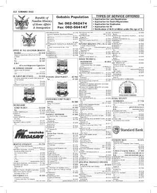 Republic of Gobabis Population TYPES OF SERVICE OFFERED