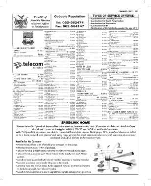 Telecom Namibia SpeedLink home offers voice services, internet access and ISP services via Telecom Namibia Fixed