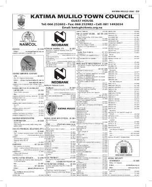 NAPWU KATIMA BRANCH............... 25 4065 OCEAN PHARMACY...................................... 25 3494 SHIMWE TRADING ENTERPRISES CC..... 25 4941 SOCIAL SECURITY