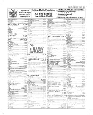 -,,,,_ ,,,, -- Republic of Katima Mulilo Population TYPES OF SERVICE OFFERED