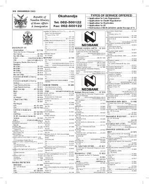 Water Sewerage................................081 269 8602 Noord St Box 620 Okahandja NEDBANK Fax ........................................................................ 50 4730