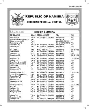 Alweendo CS Pre-10 P.O. Box 19137, Omuthiya 065-247615 N/A