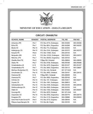 Okaku PS Pre-7 P.O. Box 2196, Ondangwa 065-243189 065-243089