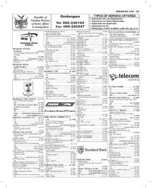 Tel.......................................................................... 24 1716 Cell ............................................................. 081 268 7711 TOWN COUNCIL ONDANGWA...................... 24 0101