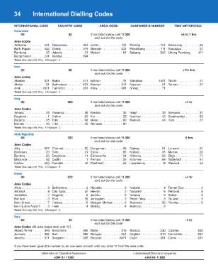 INTERNATIONAL CODE COUNTRY CODE AREA CODE CUSTOMER'S NUMBER TIME DIFFERENCE