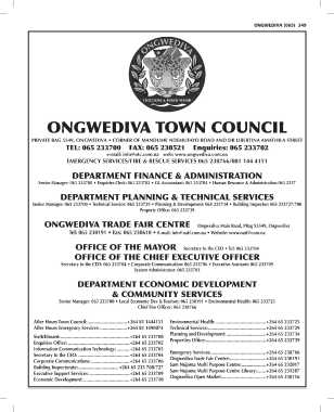 Enquiries Office: +264 65 233702 Emergency Services• +264 65 238766