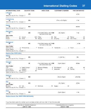 INTERNATIONAL CODE COUNTRY CODE AREA CODE CUSTOMER'S NUMBER TIME DIFFERENCE