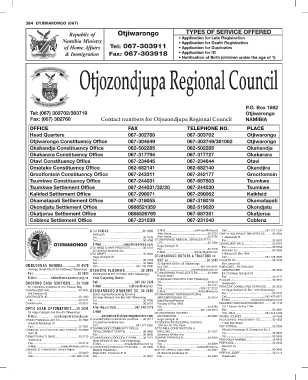 Contact numbers for Otjozondjupa Regional Council P.O. Box 1682