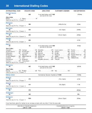 38 International Dialling Codes