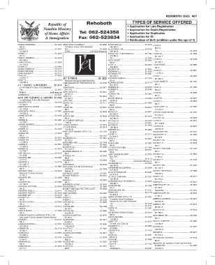 .. 0-,, Republic of Rehoboth TYPES OF SERVICE OFFERED