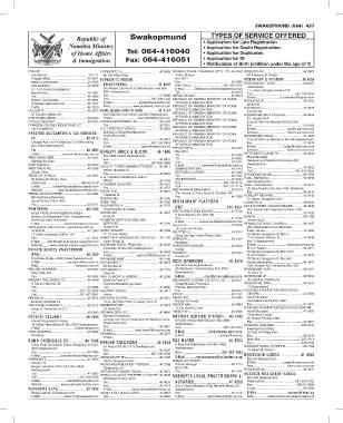 ,). ... , Republic of Swakopmund TYPES OF SERVICE OFFERED