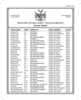 Onamatanga PS Pre-7 065-8005224/0816480080/0812 PO Box 15558, Oshakati Tsandi