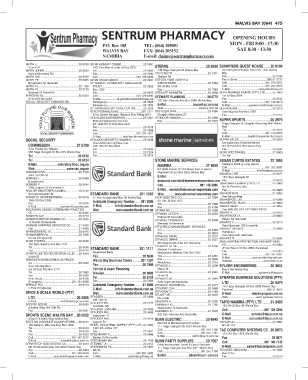 tentrum Pharmacy PS. ENTRUM PHARMACY• O. Box 185 OPENING HOURS