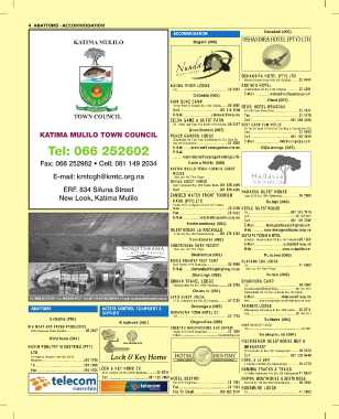 KATIMA MULILO TOWN COUNCIL ZELDA GAME & GUEST FARM Cell ...........................................................081 285 4388