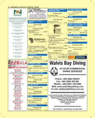20 Hosea Kutako Drive Box 22185 Windhoek......320 6111 24 HRS DIVING & LAUNCH SERVICES; ALL UNDERWATER REPAIRS
