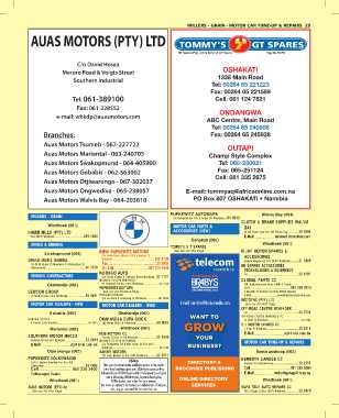Tacoma St Box 11738 Windhoek........................... 25 5590 BUSINESS? MOTOR CAR TUNE-UP & REPAIRS