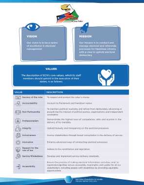 Integrity Uphold honesty and transparency in the electoral processes.